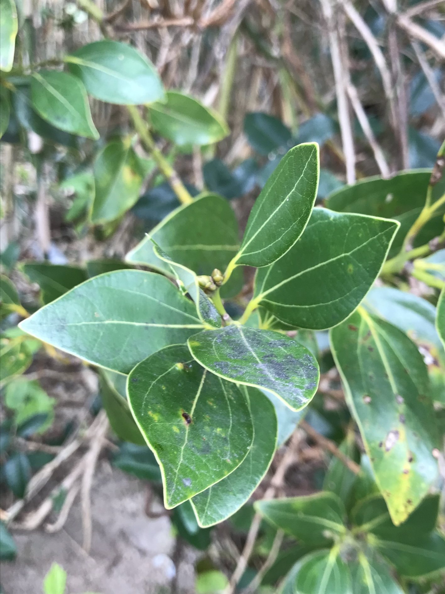 | 大きさ | 高さ20 mに達するが、式根島では10 m以下のことが多い。葉は長さ6 cm~12 cm、幅2 cm~5 cm、葉柄は8 mm~18 mm |