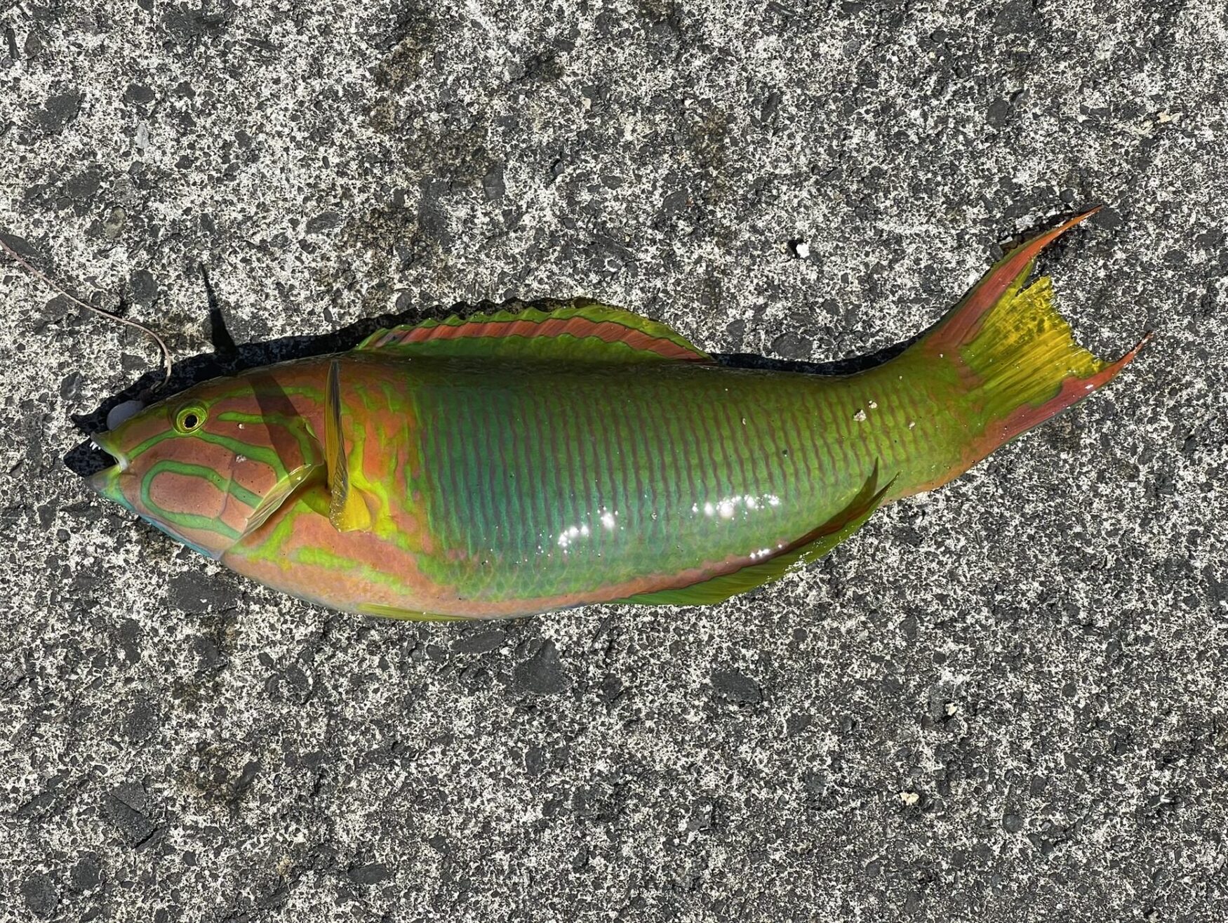 色鮮やかな極彩色のベラで、食欲がわくかというと微妙な派手さ。やや水っぽいものの、上品な白身で美味しくいただける。もう少し大きいと食べるところも多くて良いが、だいたい20㎝前後だ。オスは青緑っぽく、メスは山吹色が強い。